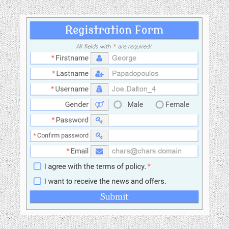 Just new HTML5 validation attributes and custom CSS checkbox.